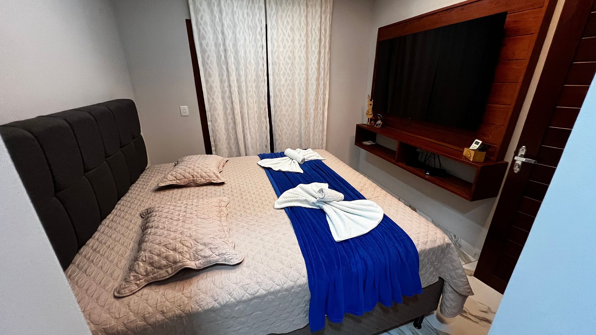 Descanse com conforto e privacidade em chalés aconchegantes, equipados com ar-condicionado, banheiro privativo, camas confortáveis, Wi-Fi gratuito e varanda com rede para momentos de relaxamento.